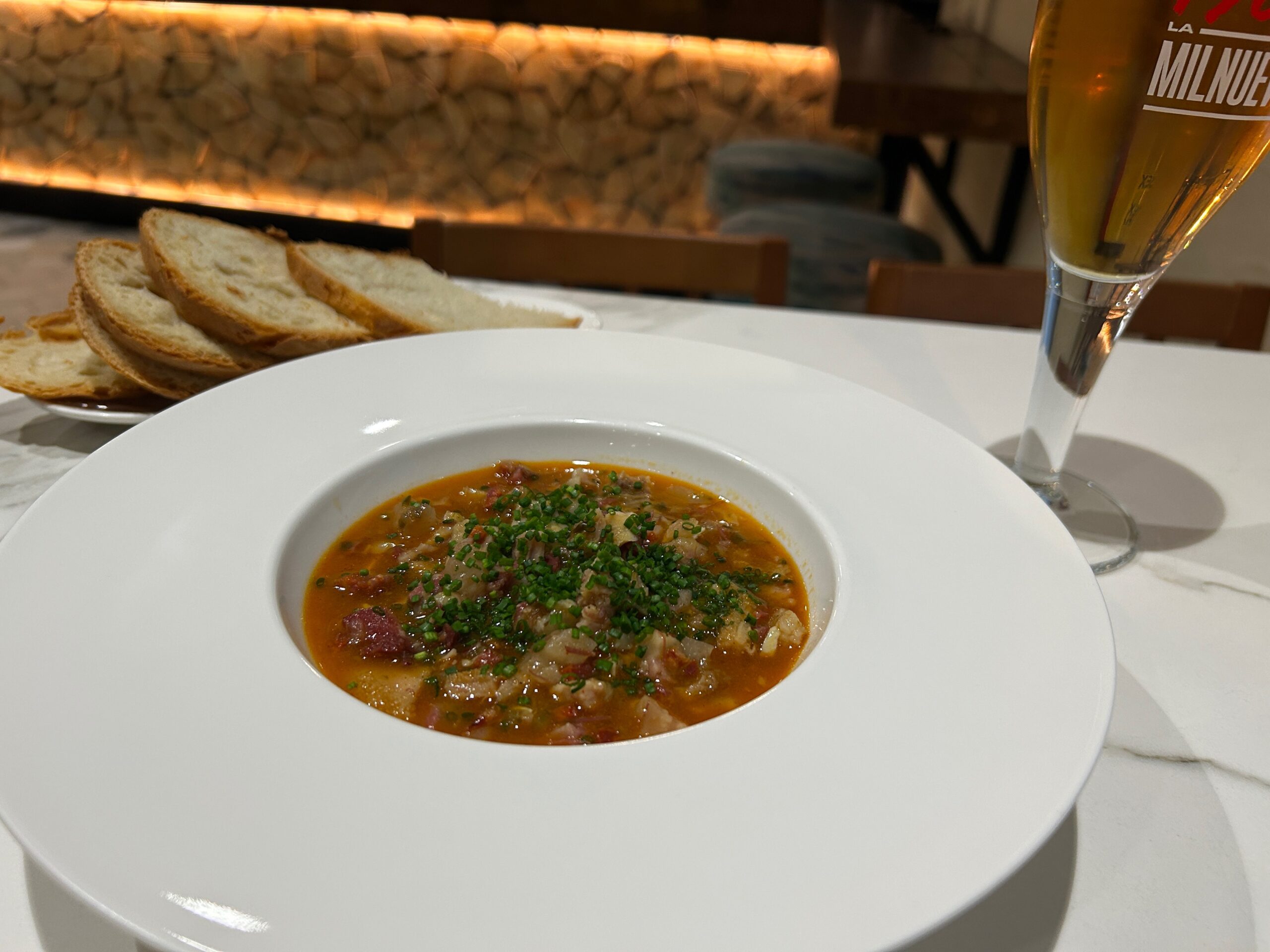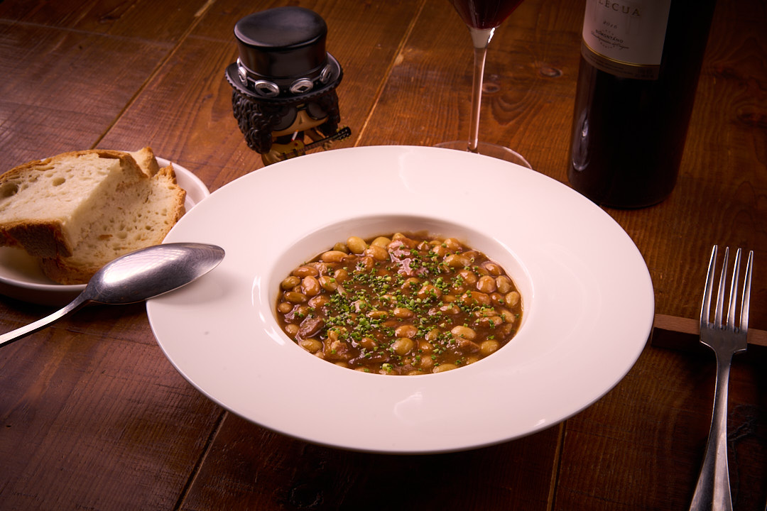 Callos tradicionales al estilo Cobarcho. Receta tradicional de matacía con tripas, pata, oreja, morro de cerdo y chorizo de León, cocinados por separado para lograr el punto perfecto de ternura antes de unirse en su propia gelatina. El resultado: un guiso intenso, sabroso y con textura melosa. Se acompaña de pan de pueblo artesanal, horneado con leña en Santa Cilia, perfecto para disfrutar hasta la última cucharada.