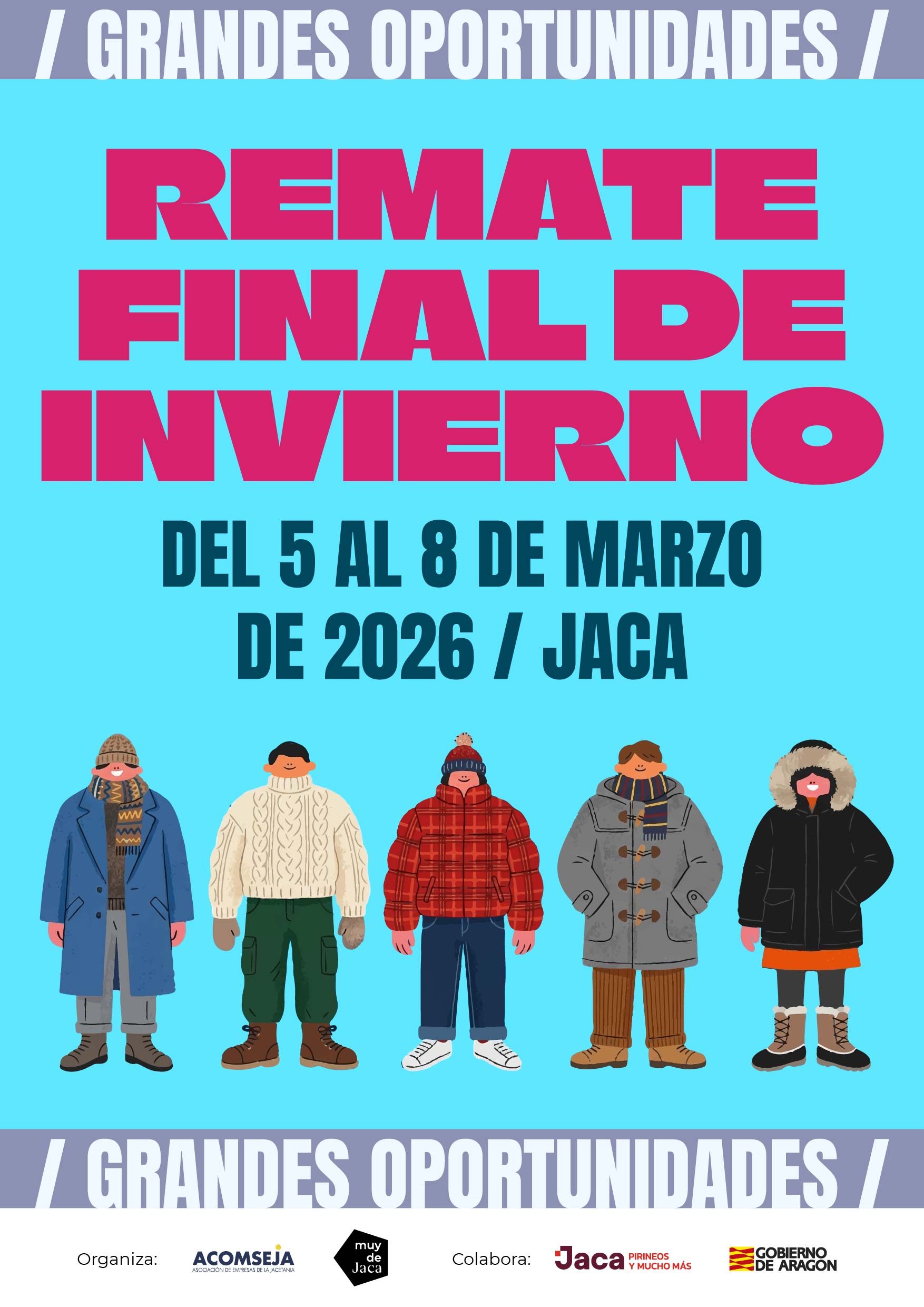 Cerca de 30 comercios asociados a ACOMSEJA, la mayoría de ellos perteneciente al sector de ropa, calzado y complementos, van a participar del jueves 5 al domingo 8 de marzo en una nueva edición del «Remate Final de Invierno», la acción con la que la Asociación de Empresas de la Jacetania quiere dar el último impulso a la campaña invernal. Este año se da la circunstancia de que la iniciativa coincide con el popular puente de la “Cincomarzada” de Zaragoza, por lo que se prevé una masiva presencia de visitantes.